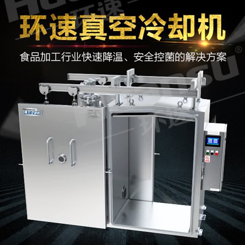 熟食品生产都必须经过河北熟食真空冷却机,贯通门式冷却机冷却的速度和质量对产品的品质和保质期有较大的影响。传统的冷却方式是自然冷却或者冷库冷却,传统冷却方式冷却时间长,内外温差大,而且易造成食品的”二次污染”和细菌超标。而真空快速冷却是一种快速蒸发冷却技术。它将刚出炉的熟食品放入密封的真空箱内,通过真空降压的方法,使食品水分在低压下快速蒸发降温的方式,从而达到冷却的目的。